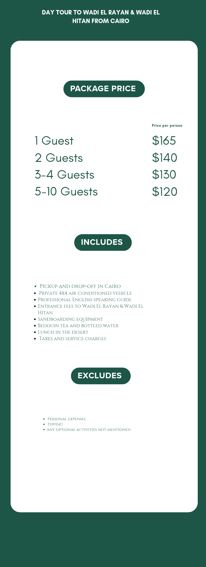 💡 Wear comfortable clothes and sneakers for desert terrain.
